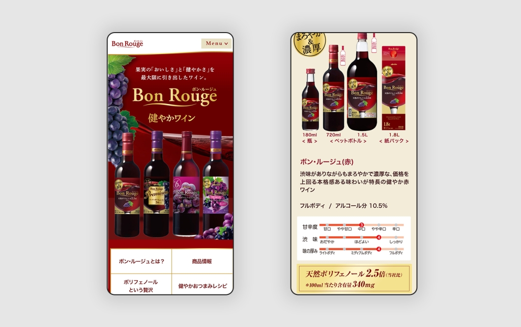 デザイン/コーディング URL https://www.kirin.co.jp/alcohol/wine/bon-rouge/ タイプ ブランドサイト テイスト エレガント 業種 食品・飲料 東京2020 みんなのフードプロジェクト LP前の記事 メルシャン ボン・ルージュ エクセレント LP次の記事