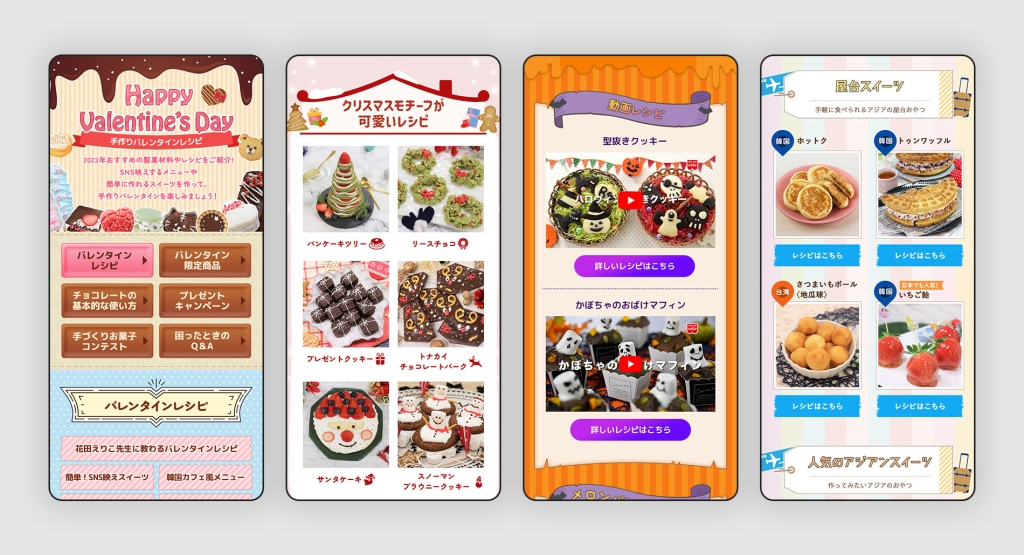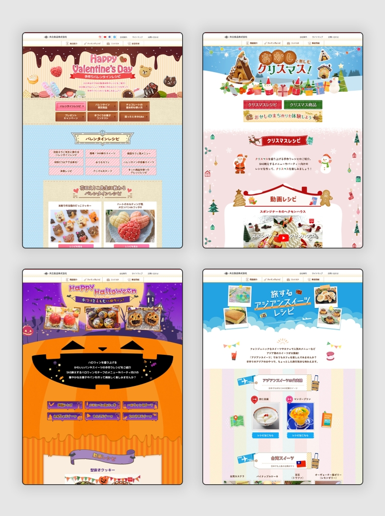 デザイン/コーディング 季節に合わせたレシピなどを載せた特集ページを作成。長期で担当させていただいたため、ワンパターンにならないよう楽しいデザインを目指しました。 URL タイプ LP テイスト キュート ポップ 温かい・やさしい 業種 食品・飲料 赤ちゃん本舗 ベビーテックページ前の記事 大和ハウス キャンペーンLP・メルマガ次の記事
