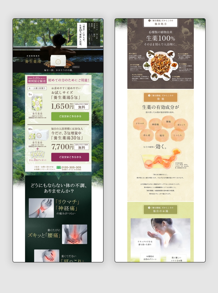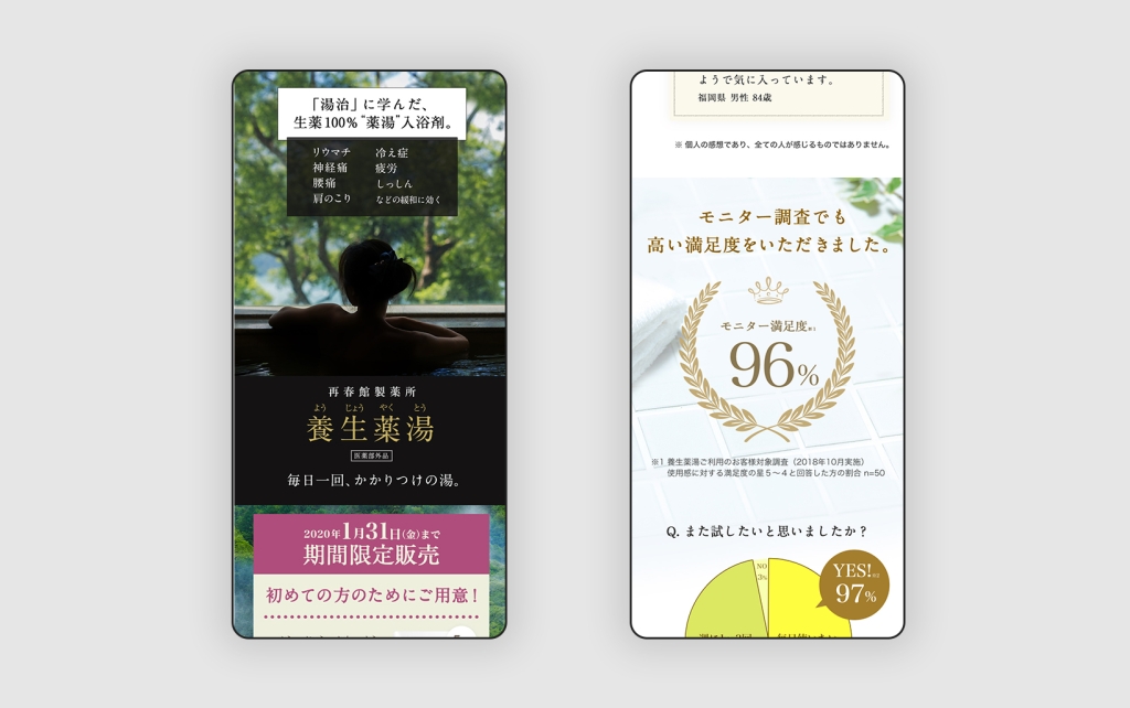 デザイン 漢方・癒し・女性らしさ・温まる・ナチュラル感が伝わるデザインを心掛けました。 URL https://web.fish-owl.biz/yojoyakuto/5cp_001.html タイプ LP テイスト ナチュラル 和風 温かい・やさしい 業種 コスメ・美容 森永製菓 甘酒糖質50%オフ キャンペーンページ前の記事 第一三共ヘルスケア プロペト ブランドサイト次の記事