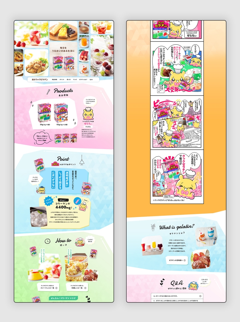 デザイン/コーディング キャラクター「ぜらちぃ」のかわいらしい雰囲気とゼラチンのプルプル感・清涼感を感じさせるデザインにしました。 URL https://www.morinaga.co.jp/gelatin/ タイプ ブランドサイト テイスト キュート ポップ 業種 食品・飲料 オービタルインサイトジャパン コーポレートサイト前の記事 マクセル everedge ブランドサイト次の記事