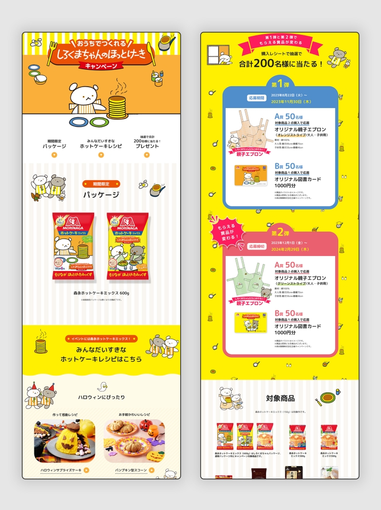 デザイン/コーディング シンプルでかわいらしく感じさせつつ、しろくまちゃんの世界観を壊さないようにデザインしました。 URL タイプ LP キャンペーンサイト テイスト キュート シンプル ポップ 業種 食品・飲料 森永製菓 サンデーカップ×おでかけ子ザメ コラボキャンペーン前の記事 森永製菓 ハッピーサマー ザ・クレープキャンペーン次の記事