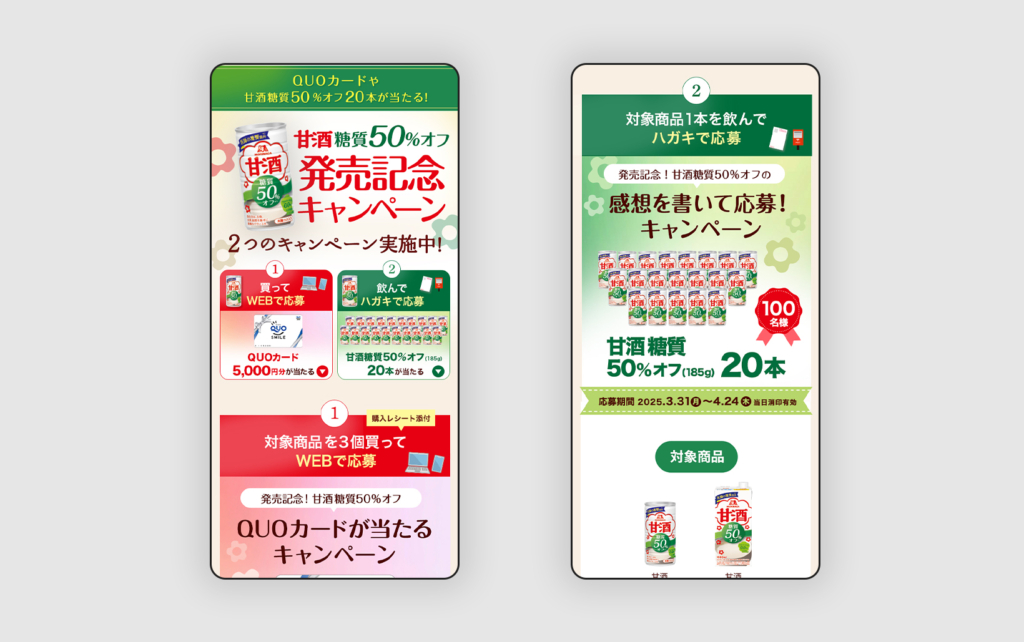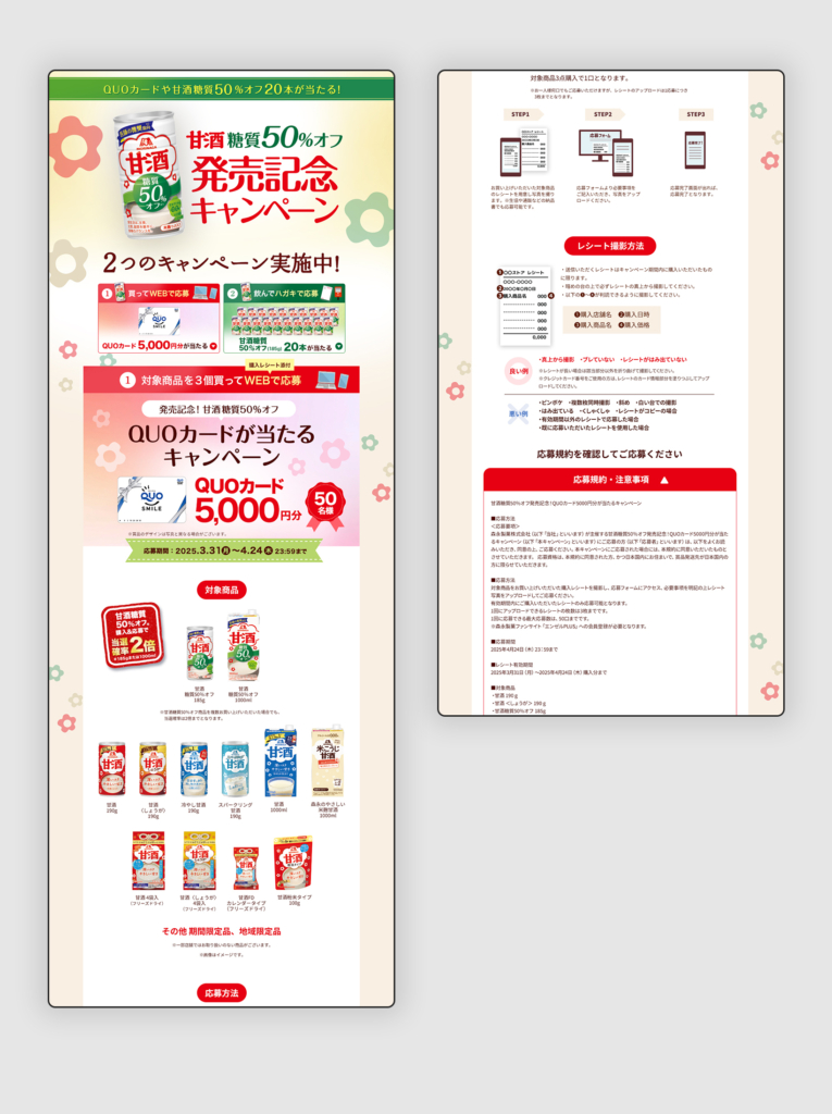 デザイン/コーディング URL https://web.fish-owl.biz/amazake/toushitsuoff/hatsubaikinen タイプ LP キャンペーンサイト テイスト ポップ 温かい・やさしい 業種 食品・飲料 森永製菓 リトさん×小枝 特設ページ前の記事 再春館製薬 養生薬湯LP次の記事