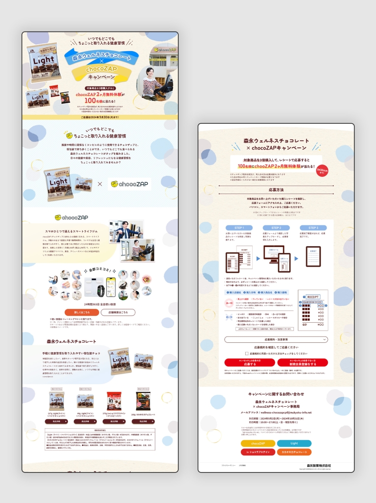 デザイン/コーディング 健康に対し意識が高い方を想定し、飾り過ぎず構成はシンプルにしています。 メイン商品の色をベースに全体の色味を調整しました。 URL タイプ LP キャンペーンサイト テイスト ポップ 業種 食品・飲料 森永 全額返金キャンペーン前の記事 森永ホットケーキミックス×しろくまちゃんのほっとけーき キャンペーン2024次の記事
