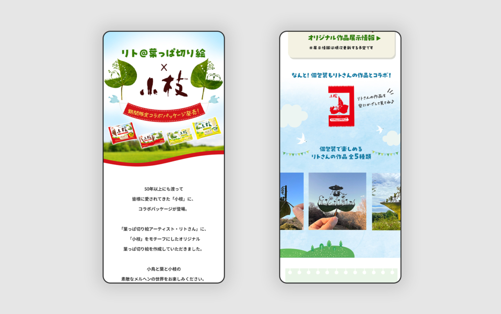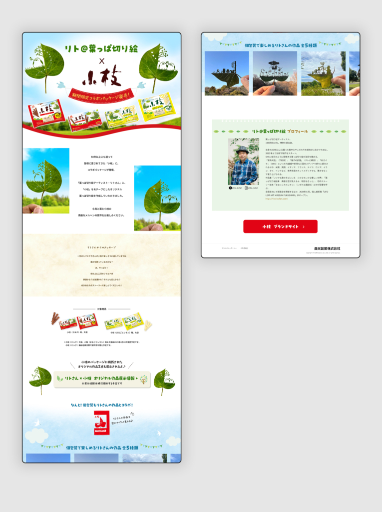 デザイン/コーディング URL https://www.morinaga.co.jp/koeda/lito-leafart/ タイプ LP ブランドサイト テイスト ナチュラル 温かい・やさしい 業種 食品・飲料 森永製菓 inゼリー エネルギーロングライフLP前の記事 森永製菓 甘酒糖質50%オフ キャンペーンページ次の記事