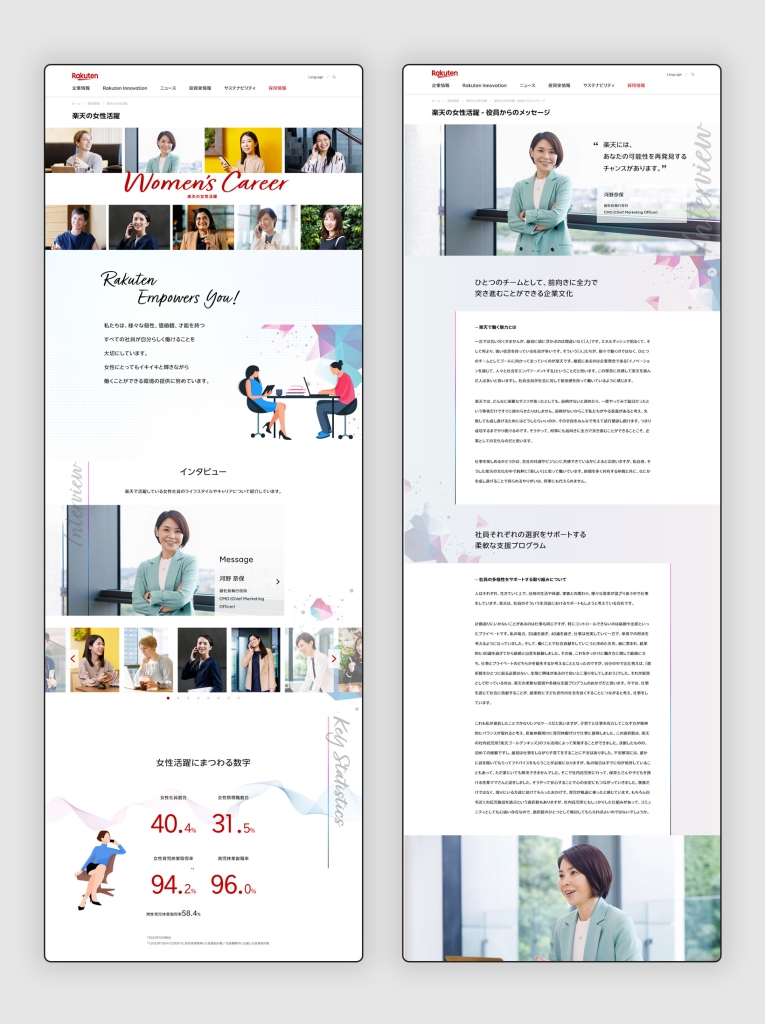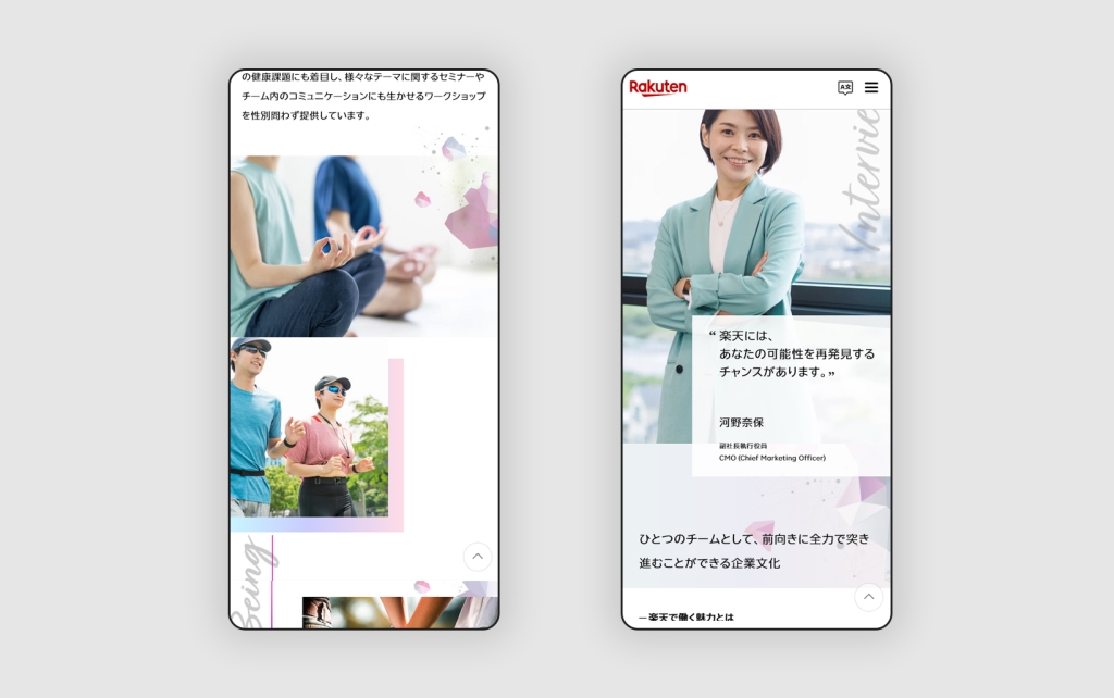 デザイン/コーディング/JavaScript/翻訳 コンペから携わり、デザイン、コーディング、翻訳を担当。撮影や楽天社員さんへのインタビューも参加しました。 URL https://corp.rakuten.co.jp/careers/womenscareer/ タイプ LP コーポレートサイト テイスト スタイリッシュ 業種 情報通信 マクセル 消臭加湿器オキシミスト ブランドサイト前の記事 森永製菓 サンデーカップ×コアラ絵日記コラボキャンペーン次の記事