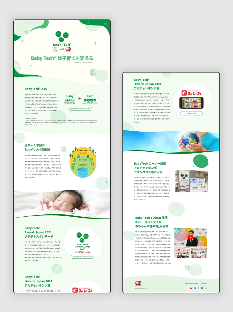 デザイン/コーディング/JavaScript 全体の構成はシンプルですが、背景に動きを入れて柔らかさと独自性をだしました。 URL https://www.akachan.jp/babytech/ タイプ コーポレートサイト テイスト スタイリッシュ ナチュラル 業種 卸売・小売業 赤ちゃん本舗 SDGsページ前の記事 共立食品 特集LP次の記事