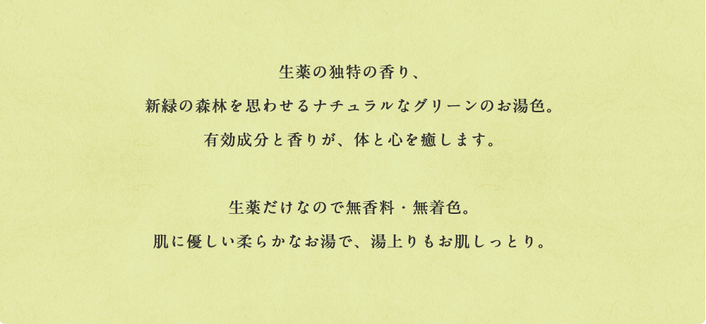 また、お湯の中で「養生薬湯」を揉むことでも、成分やお湯色が濃く出ます。